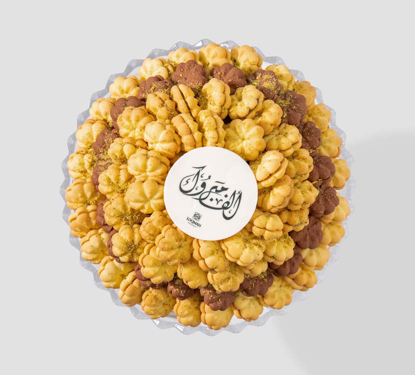 A French Petit Four assortment with a light and fluffy texture, designed as small and soft pieces with a variety of fillings including Lotus, chocolate, and jam, providing a balanced variety of flavors, suitable for daily hospitality as well as elegant occasions.