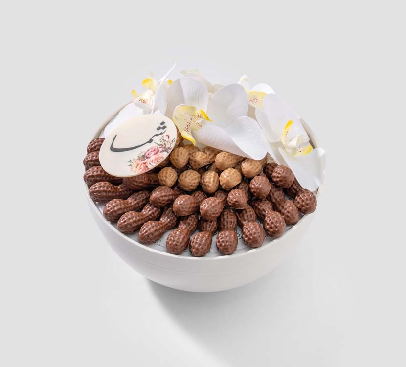 Caramel Chocolate and Royal Chocolate filled with smooth peanut praline and caramelized peanut praline.