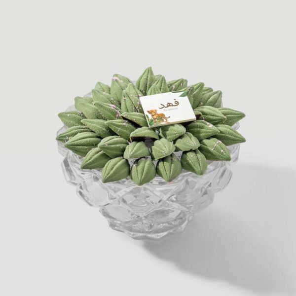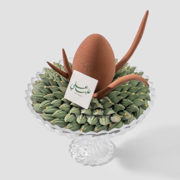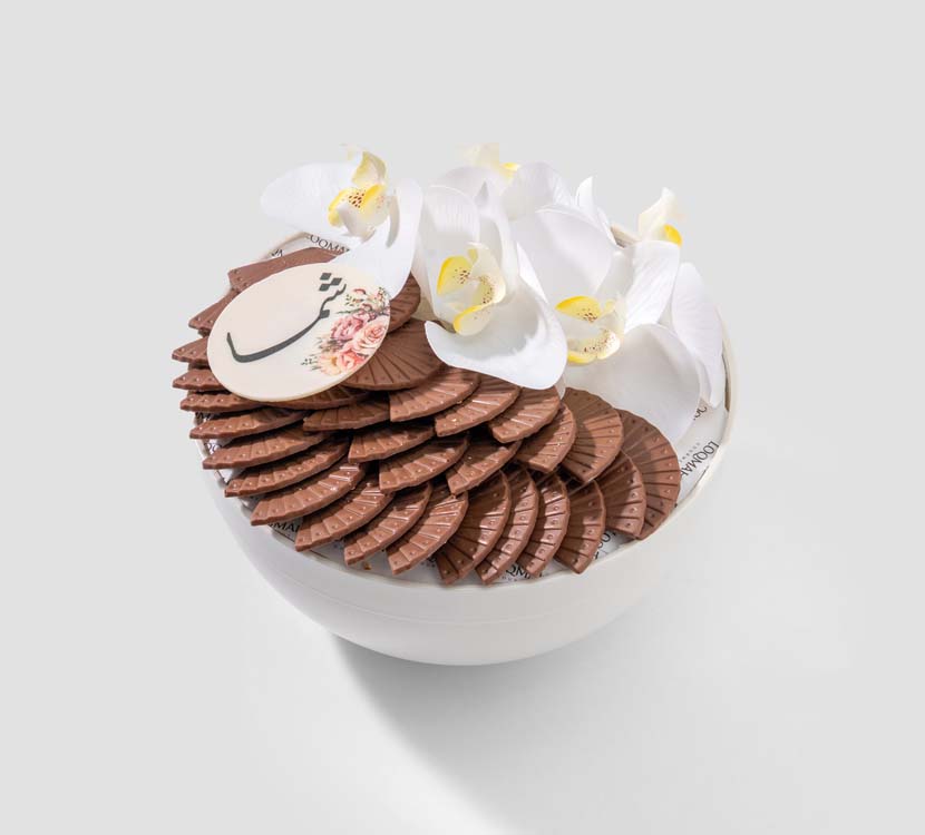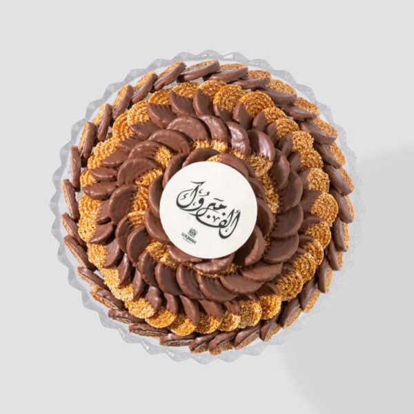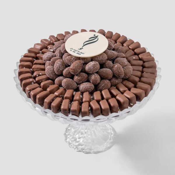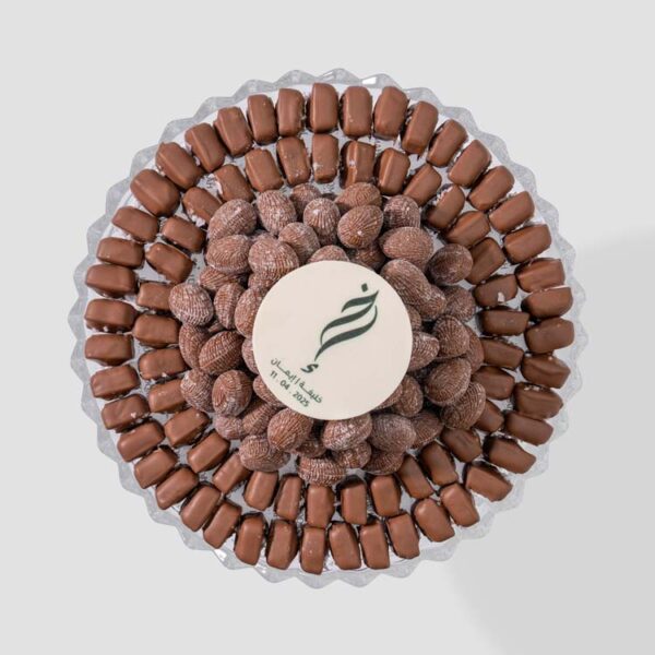 Pure Chocolate is designed with an elegant fan-shaped arrangement, topped with hand-roasted hazelnuts and fresh nuts that add a luxurious taste and a bold presence, complementing the premium flavor of each piece.