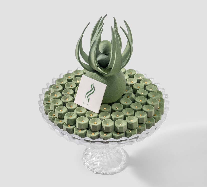 This tray features a carefully sculpted central centerpiece, surrounded by chocolate pieces with distinct and independent fillings.