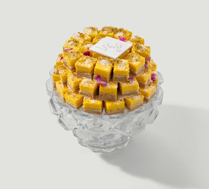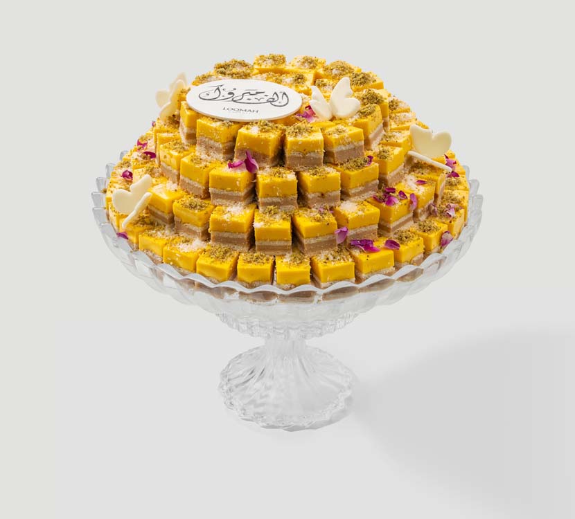 A creamy texture that combines the smoothness of French Crème Anglaise with the coolness of cold custard, with an elegant Gulf spirit, featuring layers of cake prepared by hand with balanced flavors of cardamom and saffron.