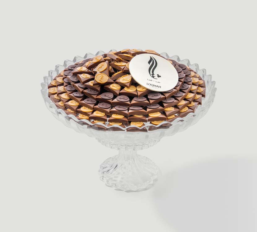 A chocolate meticulously crafted with high precision, each piece bearing its name finely engraved. It contains a luxurious pistachio filling with a soft, rich center. A refined choice that reflects craftsmanship and quality, suitable for special occasions and a taste that accepts no compromise.