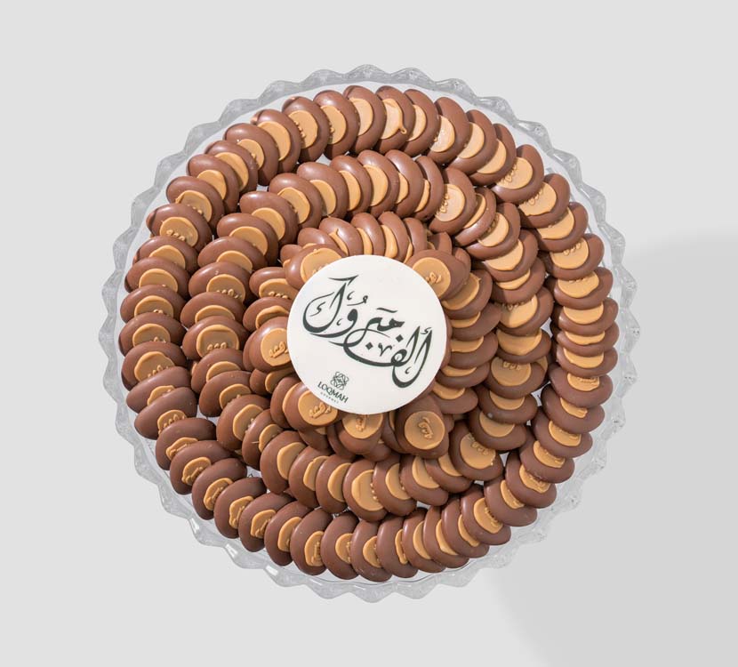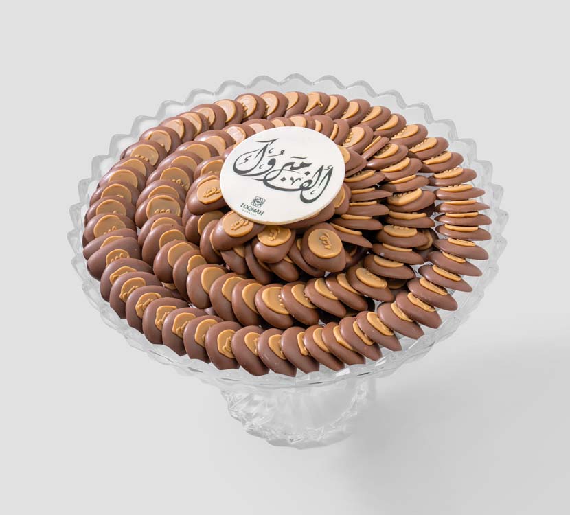 Chocolate crafted in the shape of a smooth shell, filled with handmade ganache in delicate layers that flow on the palate, with a name engraved in a golden touch on each piece. Presented as an elegant choice for occasions that appreciate refined simplicity. If you want a very short version for the menu.