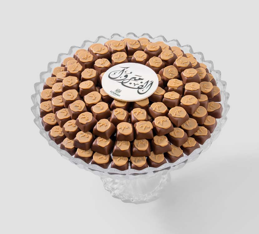 Chocolate Tray featuring an elegant, uniform arrangement of cubes. Made from smooth chocolate and filled with authentic Praline and balanced layers of Caramel. Each piece is precisely engraved with the chocolate’s brand name, making it a sophisticated choice for hospitality and occasions that appreciate authentic flavor and meticulous detail.