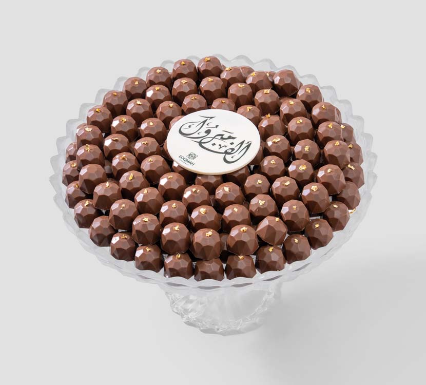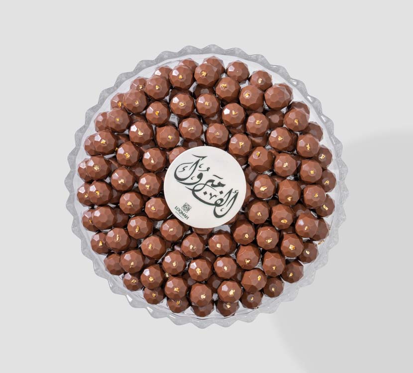 An elegant arrangement of carefully designed chocolate pieces, featuring two distinct fillings: a smooth milk chocolate ganache and a French hazelnut praline with a balanced texture and clear flavor. Each piece is decorated with delicate touches of gold leaf, adding a luxurious and calm radiance that highlights the details of the pieces without overpowering the flavor. An Opera hospitality piece that expresses sophisticated and balanced taste, where classic flavors meet an elegant and thoughtful presentation.